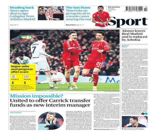 据英国《卫报》报道,曼联的临时主帅选帅大幕已经徐徐落下,卡里克预计周二将会正式官宣上任。该报还说,俱乐部愿意为这名44岁的教练提供足够的资金支持,但引援前提是出现了合适的目标球员可以加强球队阵容。